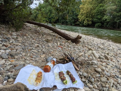 One day I met up with Dominique who I had met on my previous trip to Toulouse. He took me to a spot on the Garonne river south of Toulouse. We swam and had an improv bbq.