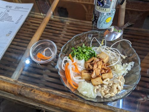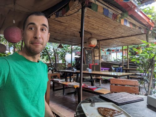 Before we left Kathmandu, we stopped by Sami Croissant. The owner is a food scientist who makes croissants out of bamboo cells. I had a “ham and cheese” croissant that was entirely vegan, pretty interesting place.