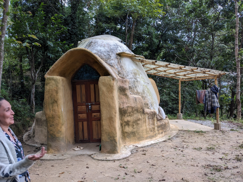 I was guided around the village by a man nicknamed “mama” (uncle). He showed us the various projects Conscious Impact had accomplished. He showed the volunteer group a bus stop made of bamboo, cob, and eco-bricks! I was happy to see that they advocate for eco-bricks here. We saw houses made of cob, earthbags, and earth bricks.