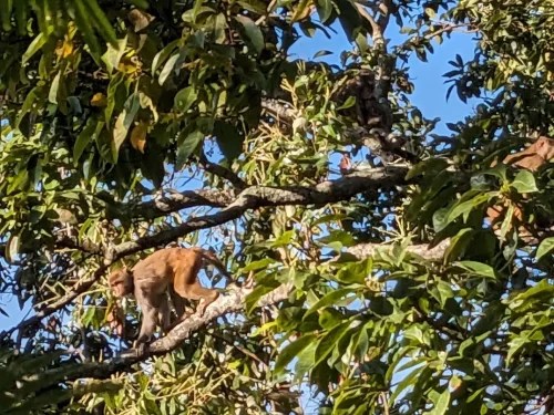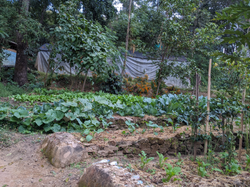 Monkeys are big nuisance to the farmers here. They travel in groups of 20 -30, sometimes up to 100, destroying crops and gardens. It’s important that around dusk time, not to allow them to be near your crops, otherwise they’ll stay overnight and eat them early in the morning. For 3 days we had monkeys near our garden. A variety of tactics were used by a number of volunteers and staff to scare them off. For those 3 days, I did my morning meditation in the garden. I noticed that they got close but wouldn’t come down to the ground if I was there.