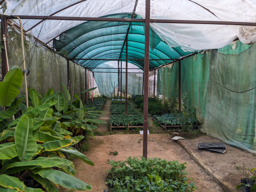 The village is marked by a single tea shop that sells convenience store type products. We were greeted by the founder, Orion, his wife Marianna, and newborn, Camillo. We were shown the premises which include an open air kitchen, a lounge space, a tipi, a brick making station, a bamboo treatment station, a dorm, some compost toilets, a green house, a garden, an orchard, a cob oven, and 2 earthbag homes.