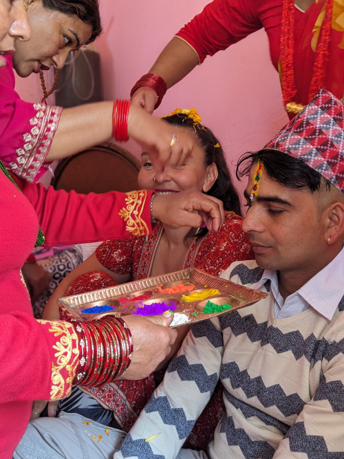We continue to have community dinners once a week. This week, we were invited to a local Nepali wedding reception.