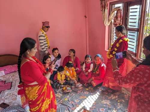 The final day of Tihar is called Bhai Tika. This is where women go to their family home and offer blessing of snacks, flowers, and forehead paints to their brothers. The brothers then offer money blessings to each of their sisters.