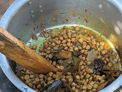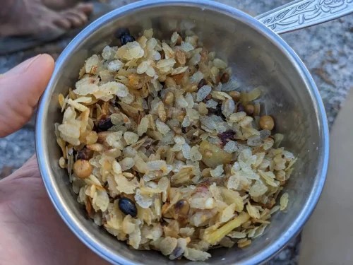 Some tea time snacks are unusual, many times including raw flat rice, roasted soy beans, and raw onion.