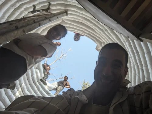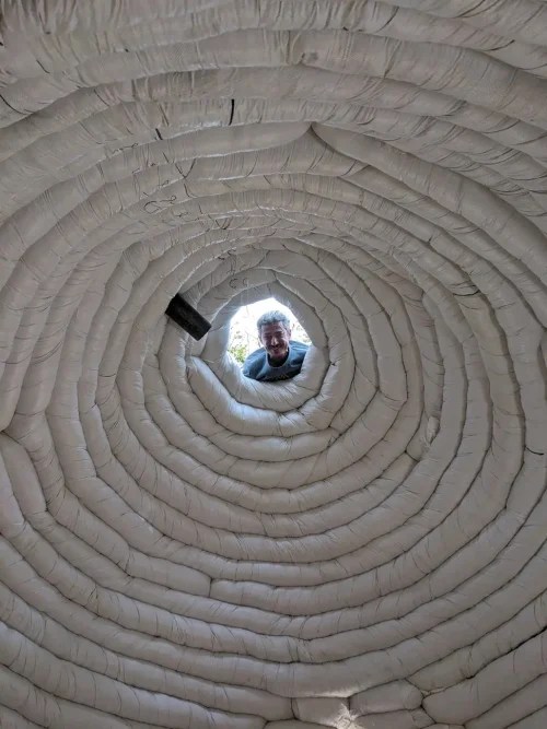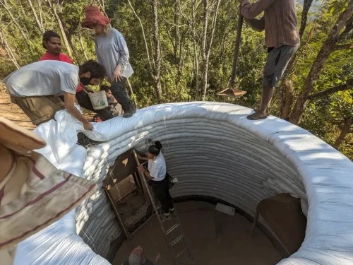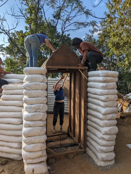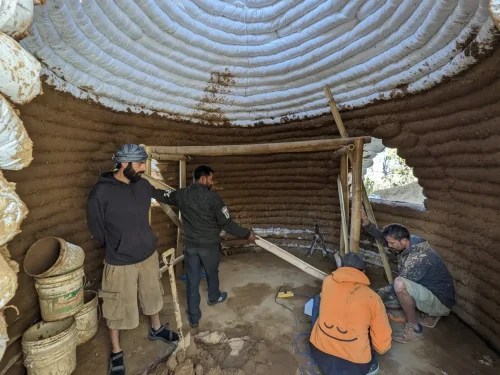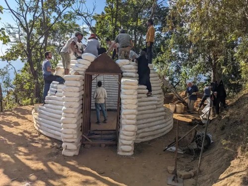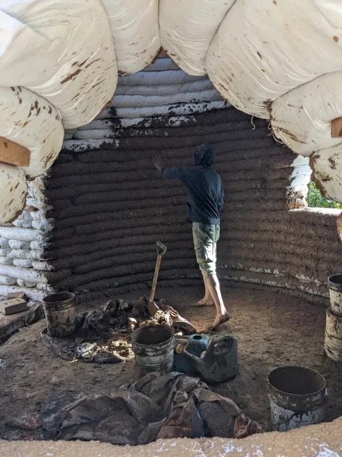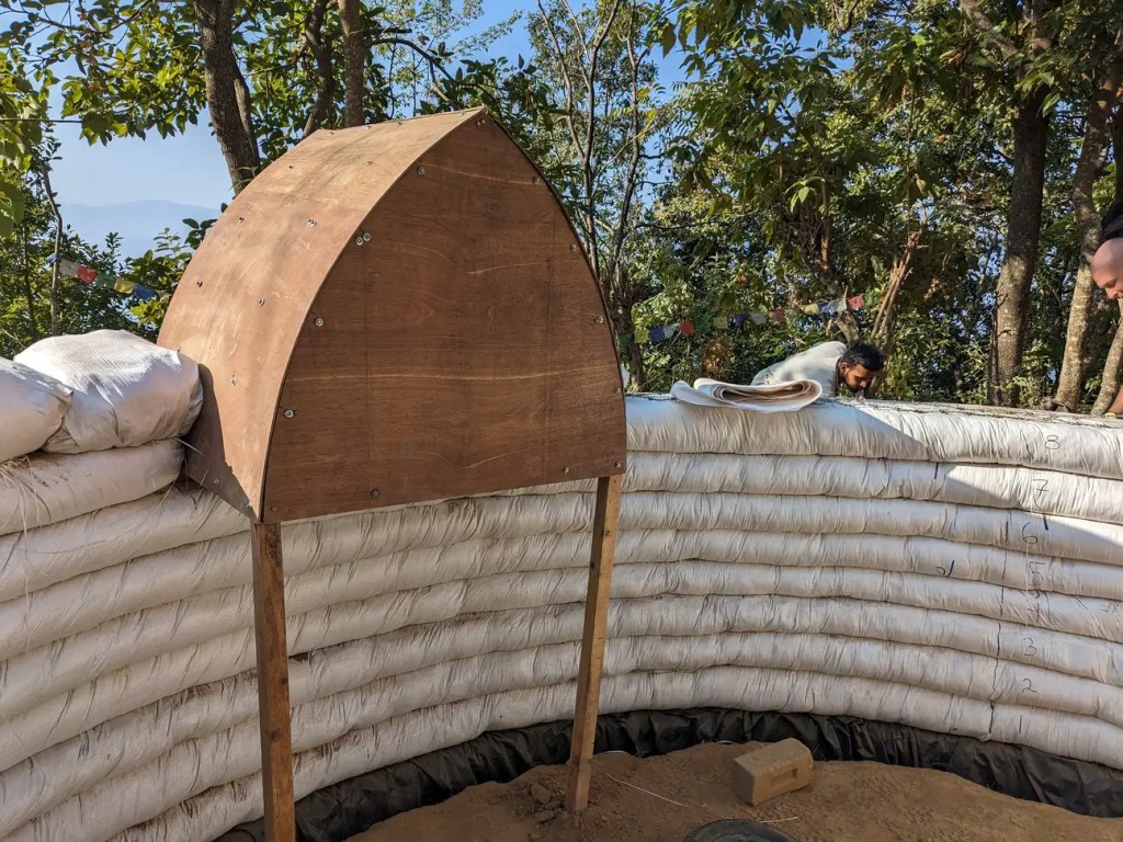 The dome was completed on Friday. I could hardly believe the daily grind of shoveling and mixing dirt, filling bags, tossing buckets, compass measuring, and barbed wire weaving were suddenly ended. With that, also a dispersion of a quickly formed tight-knit community. It was over in the blink of an eye. I made sure to document the details of the entire process.