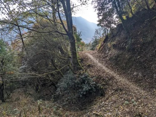 After the formal course ended, I headed down with the exiting group to spend a few days in Kathmandu. On the way back up, the bus got stuck in the mud for about 1.5 hours. It was amusing/ frustrating watching the Nepali passengers attempt various methods to free the bus. I had my own ideas, but they were shot down. When the men were tired and resting, the bus backed up to get a “running start”. I quickly leveled the ground with a stick and stomped down to compact the earth. The bus rushed up and made it. I can’t say that my efforts was what did it, as it was in combination with techniques others were using, but in any case, I was able to see once again the mental irritation that comes up when others reject my ideas, insisting their strategies being best.