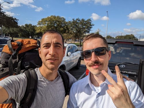 My trip began in Houston. I was fortunate to be able to get hosted and hangout with a long time friend, Oliver. It was good to catch up! While in Houston, I visited the Rothko chapel, a chapel dedicated to peace amongst all people and religious traditions. It’s a silent space with a skylight in an octagonal building. There are black murals on every wall of the large room. In my experience, there is a sense of peace that starts to open up and percolate through the brain when meditating in these kinds of spaces. It is as though the pineal gland grows up and out like a tree. Before I left Houston, I had amazing GF pancakes at Snooze.