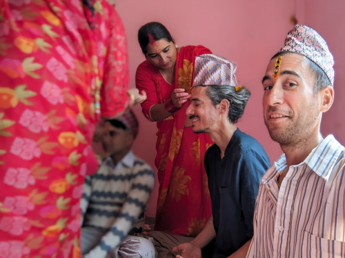 The final day of Tihar is called Bhai Tika. This is where women go to their family home and offer blessing of snacks, flowers, and forehead paints to their brothers. The brothers then offer money blessings to each of their sisters.
