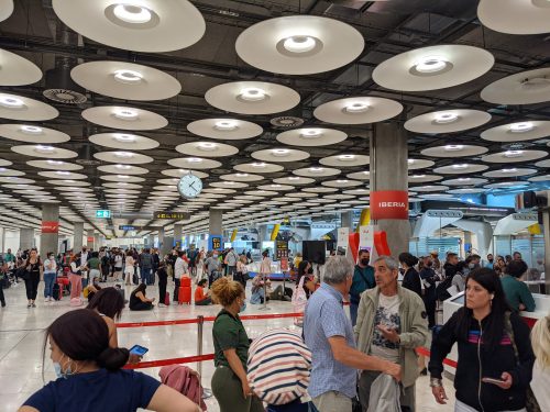 This first picture is a line of the people who had misconnections. I felt bad for them because it was an extremely slow (Spain 🙄) moving line and misconnections often inspire a sense of urgency for action. At one point, an impatient customer started clapping and got most the rest of the line to start clapping as well, to signal to the front of the line to move it along. It seemed as though the customer service representatives did not have the tools they needed in order to solve many of the problems they were brought, as they turned away many dissatisfied customers.