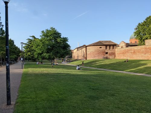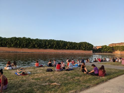 The Garonne river cuts through Toulouse. There are lovely river walks on either side. I love that people actually come out and hang out in the parks all the time, eating, smoking, drinking wine, reading. Some people even look you in the eye and say hello and good day.