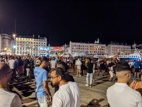 The next day, Jean couldn’t host me, so I found a hostel. I headed up to the Notre Dame Cathedral that overlooks the city. Later, I met my roommates, Luca, Romanian, and Kheli, Parisian. Kheli and I walked around the center in evening. She’s fun! I had to wake up early the next day to catch a flight, but she insisted we drink wine and walk the evening streets. We found this spontaneous party by the waterfront. I can only guess it was some kind of Arabic pop. Marseille is a big immigrant entry point.