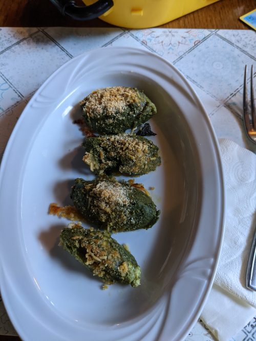 The next day we headed to the mountains at Pian Cansiglio. We went to a restaurant where the main dish were 4 pieces of gnocci. Roberta asked if I was still hungry, maintaining a straight face, I said, “I could eat more”. The second dish was a piece of fried cheese. I could’ve had something else, but it was the best sounding out of the other options, “pig” or “pig in milk.” (Roberta is a good translator.)