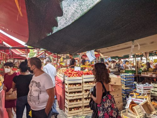 As soon as I arrived, Matteo showed me around the market place. Its open daily and has inexpensive food and clothes. I love these cities that have this kind of scene.