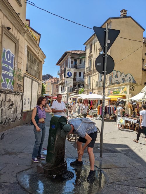 The next day, Matteo took me to the weekly antiques market. Like other places in Italy/ France, there are public drinking fountains set up around the city, but this place had the water coming out of a bull, one of the city’s symbols.