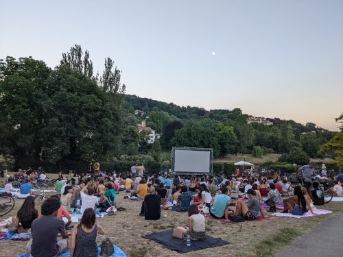 They lived in a section of the city that was reputed for its cinematic history. I love that public screenings are so common place around France.