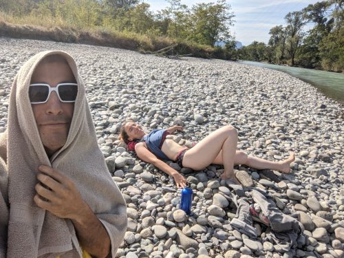 The next morning we headed out to the Drac river which runs by the city. It’s such a luxury to have a clean river nearby to go swimming in. Pity this phenomena is so unusual these day.