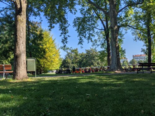 There is a lovely park at the center of town that has an operational kid’s train.