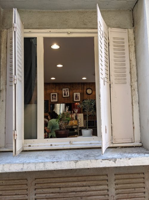 During the days I was there, this region was experiencing a heatwave. The norm in many areas in Europe is to close all the shutters in the house after around 9 a.m. in order to keep in the cool air, as many homes don’t have air conditioning. I sometimes experienced a sense of  claustrophobia during the hot afternoon hours.
